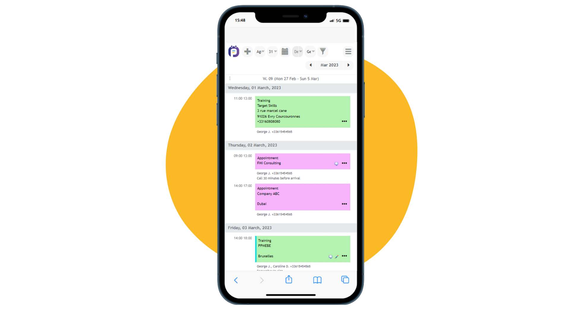 Agenda-Ansicht, für Handys, Smartphones und Tablets optimierte Ansicht der Planung