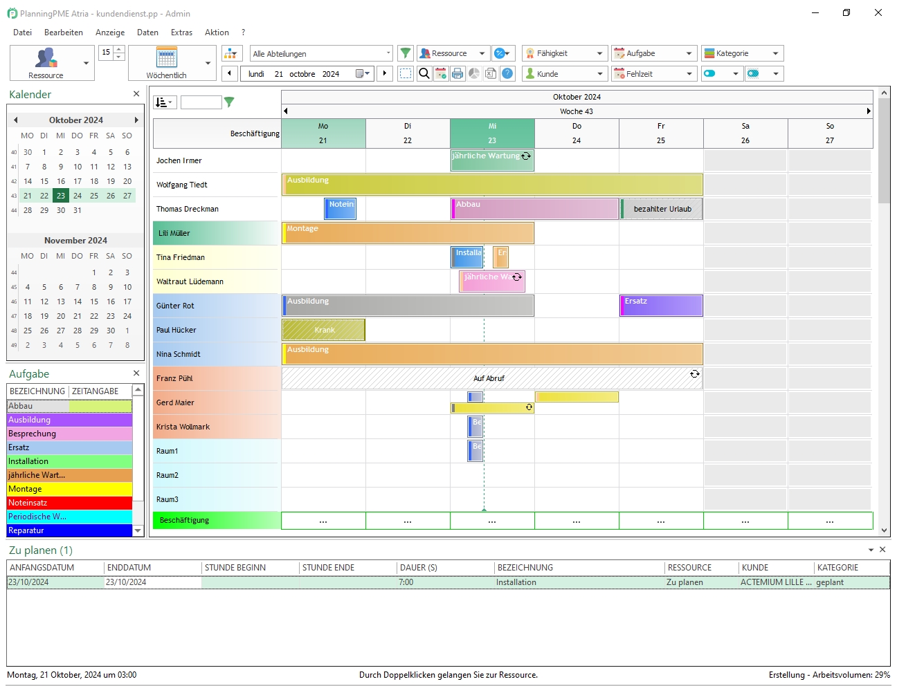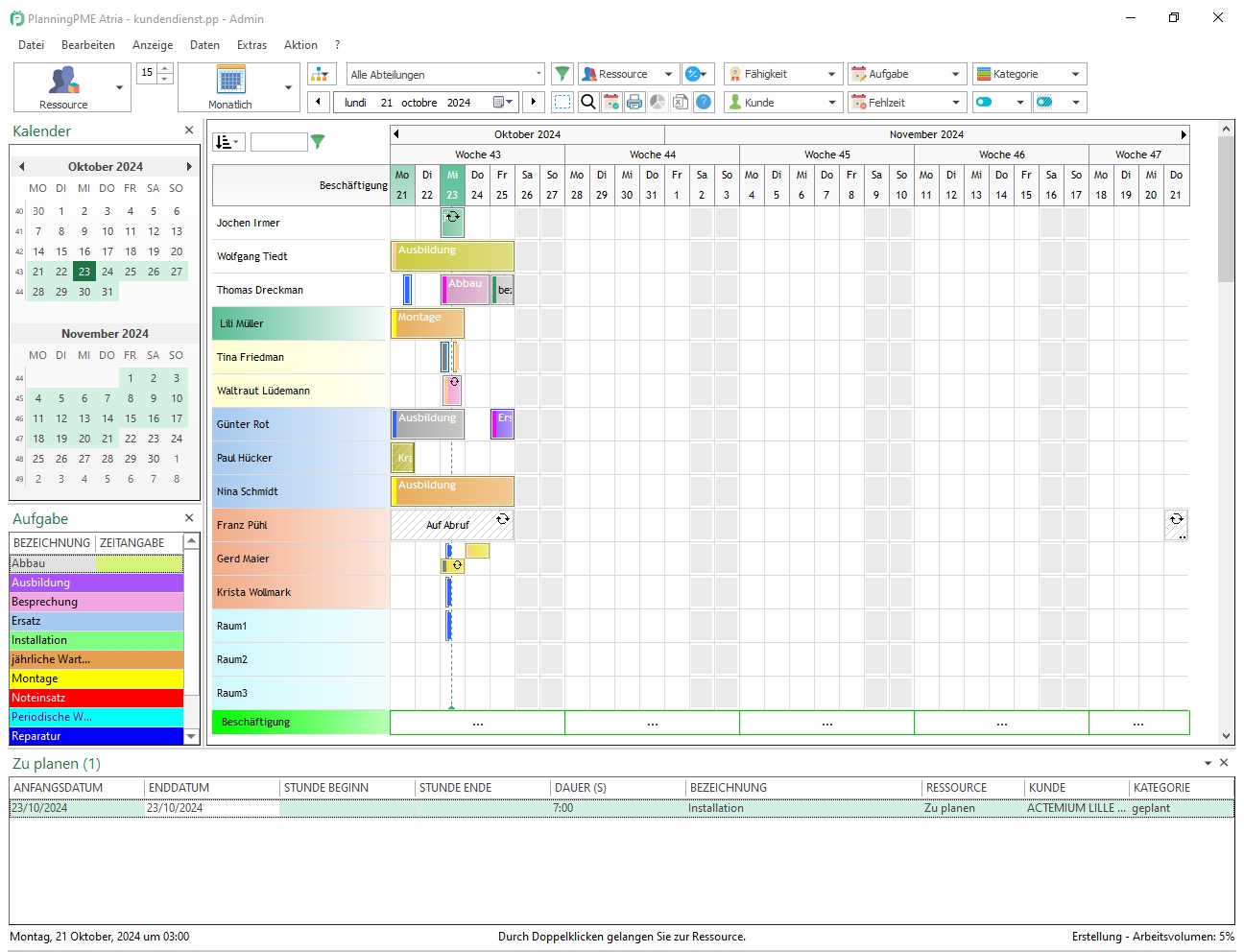 Die Wochenanzeige ermöglicht einen Gesamtüberblick auf die Aktivitäten jeder Ressource.