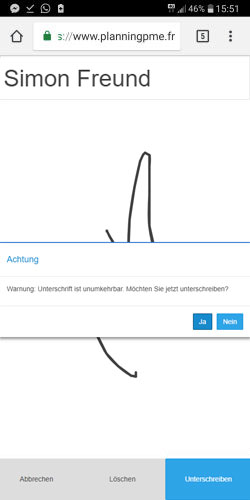 - PlanningPME Benutzer, der die Unterschrift erstellt hat