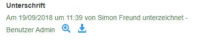 Hier erkennen Sie, welcher Benutzer zu welcher Zeit eingeloggt war als die Unterschrift hinterlegt wurde. Die Unterschrift kann eingesehen werden.