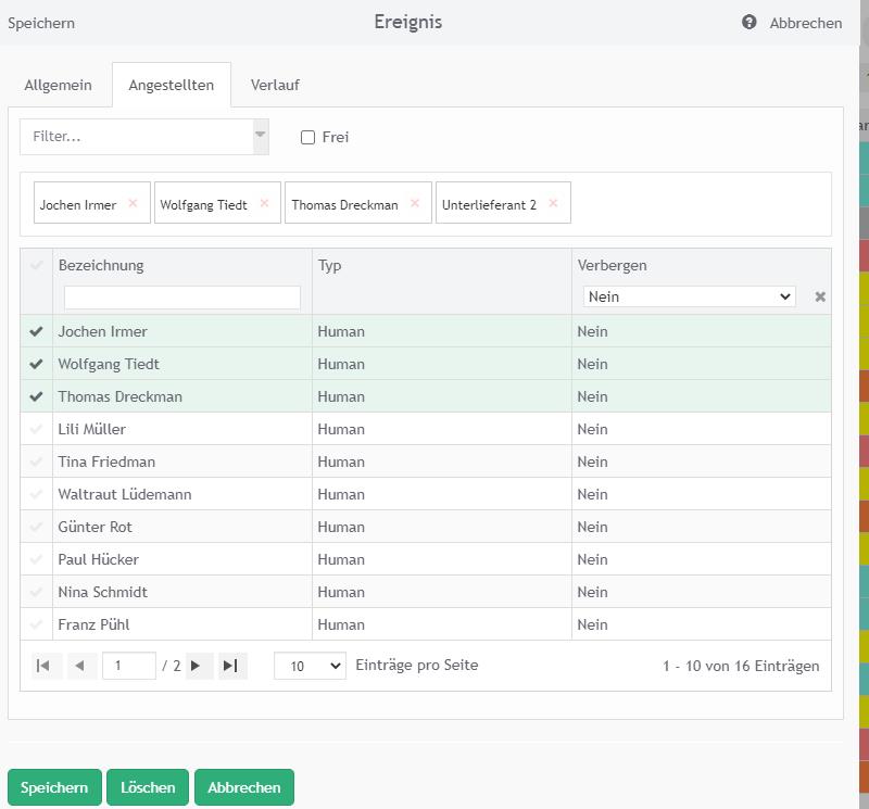 Drag and Drop: Ziehen Sie das Ereignis direkt auf ein neues Datum und/oder einen neuen Mitarbeiter und lassen Sie es dort los..