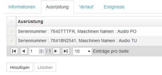 Ausrüstungsüberblick im Kundenblatt:: Es erscheint eine neue Registerkarte mit der Ausrüstung des Kunden.