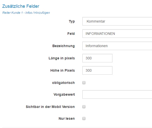 Anschließend haben Sie die Möglichkeit, in dieser Registerkarte mehrerer zusätzliche Felder zu erstellen, indem Sie auf "Hinzufügen" klicken.
