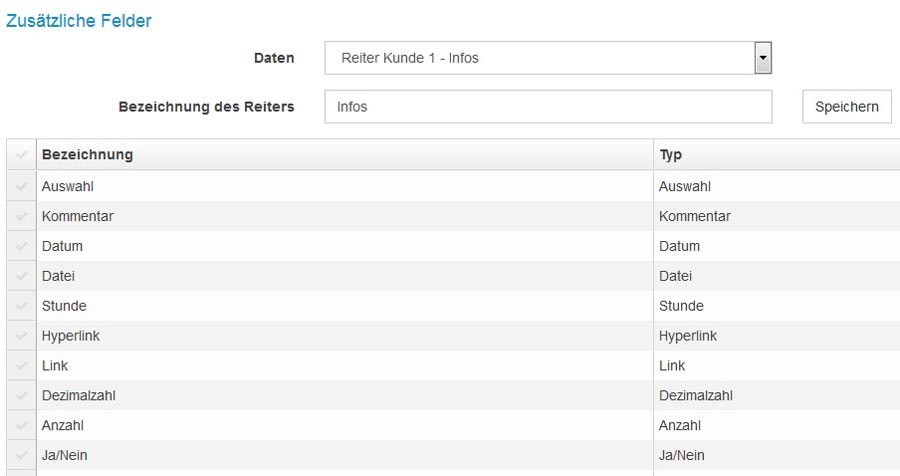 Benutzerdefinierte Felder können über das Menü Daten -> Benutzerdefinierte Felder erstellt werden.