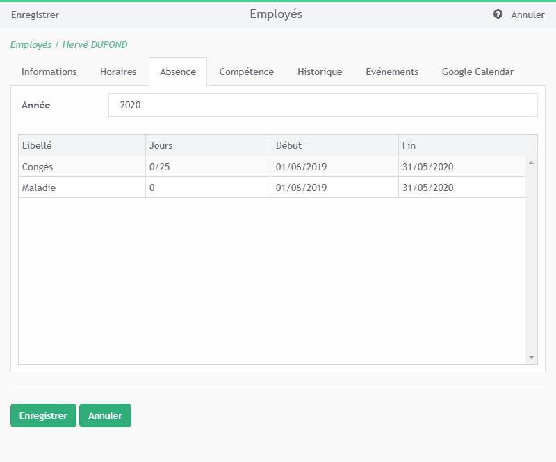 Sie können die Fehlzeit nach Ressource und Jahr direkt auf der Registerkarte Nichtverfügbarkeit der einzelnen Ressourcenkarten verfolgen.