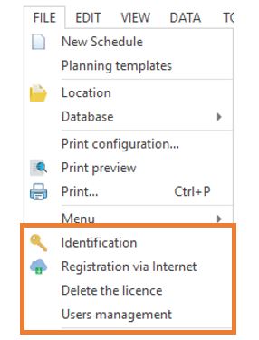 Gehen Sie in PlanningPME auf das Menü „Datei“ -> „Identifikation“. Geben Sie die Login-Daten und das Passwort ein, die Ihnen mitgeteilt wurden.