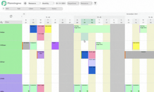 - Duplizieren : Sie können eine Gruppe von Aufgaben in allen Planungsansichten (Ressource / Aufgabe / Kunde / Projekt) duplizieren. Zum Beispiel können Sie alle Aufgaben von einer Woche zur nächsten für eine oder mehrere Ressourcen duplizieren.