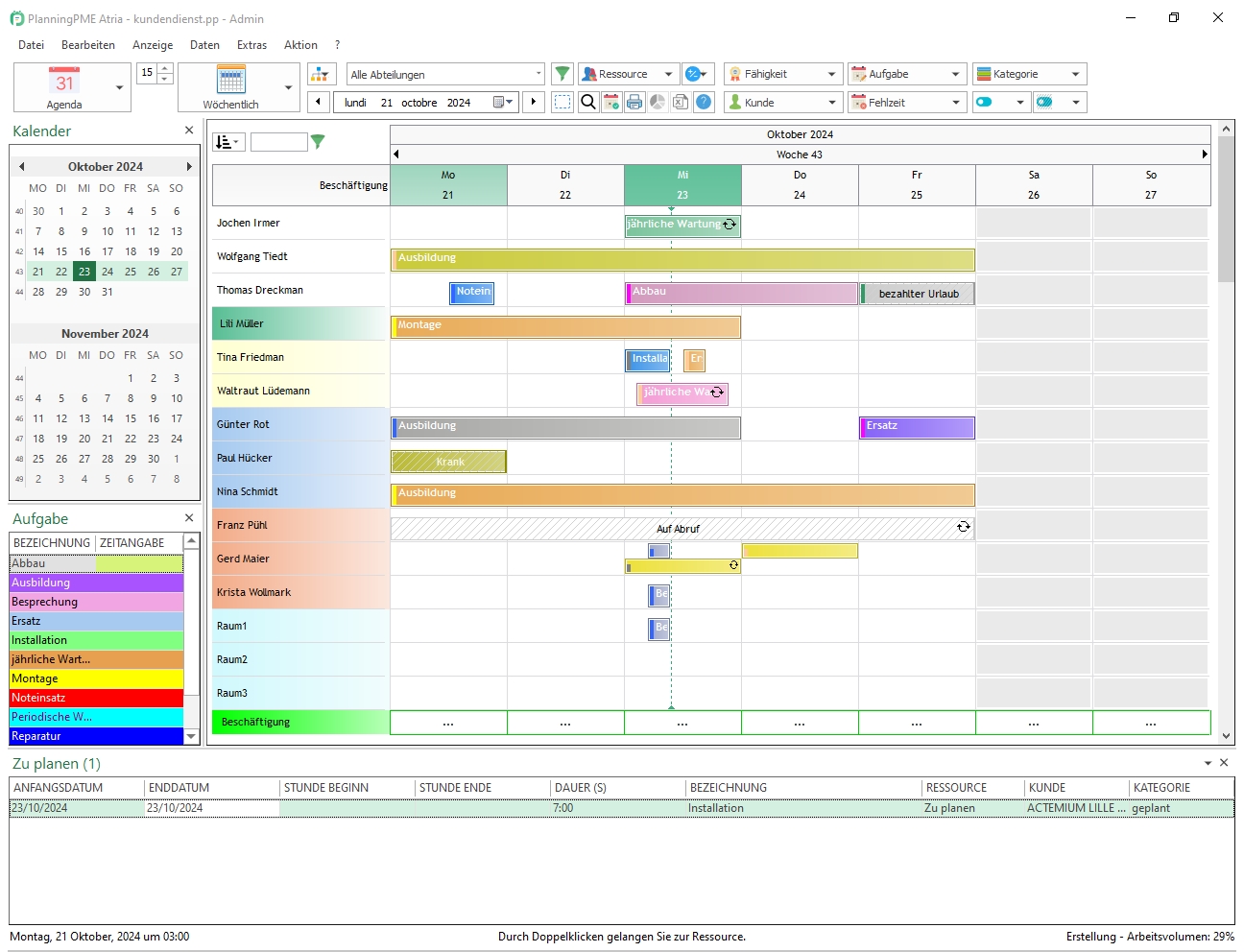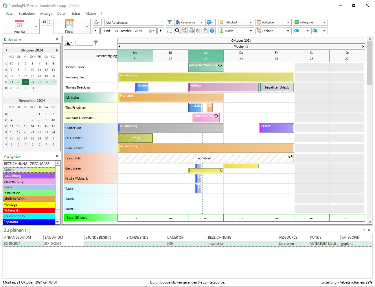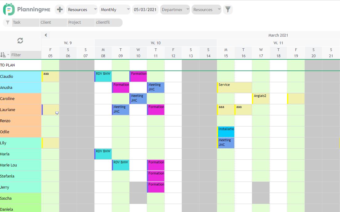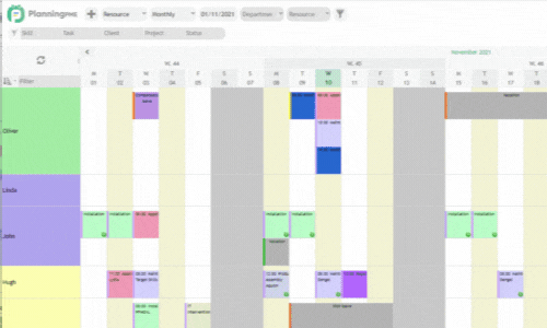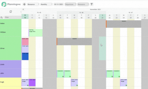 Dank des Ressourcenfilters der Online Planungslösung können Sie die Planung schnell nach einer oder mehreren Ressourcen gefiltert darstellen (Personal- oder Materialressource).