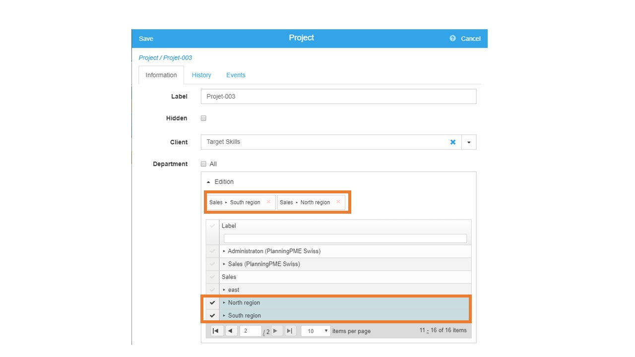 Projekte können nun auch mehreren Abteilugen gewiesen werden.