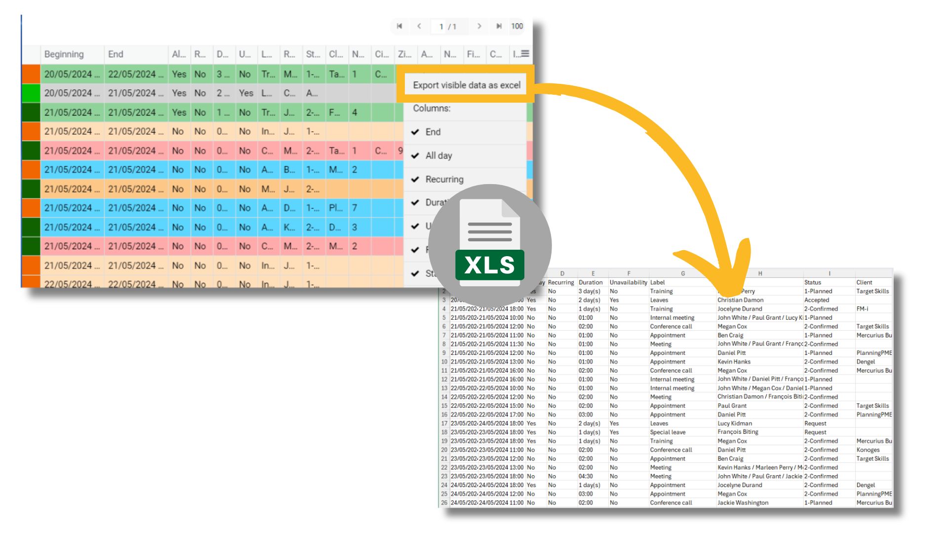 Es ist jetzt möglich, Listendaten aus der Listenansicht und den folgenden Menüs in eine Excel-Tabelle zu exportieren: Ressource, Kunde, Projekt, Benutzer, Verlauf usw..