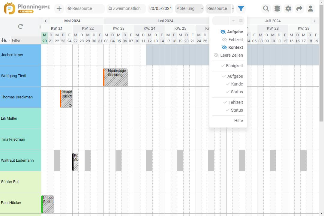 Ein neuer Filter erlaubt, die Ressourcen direkt auf der Planung zu klassifizieren