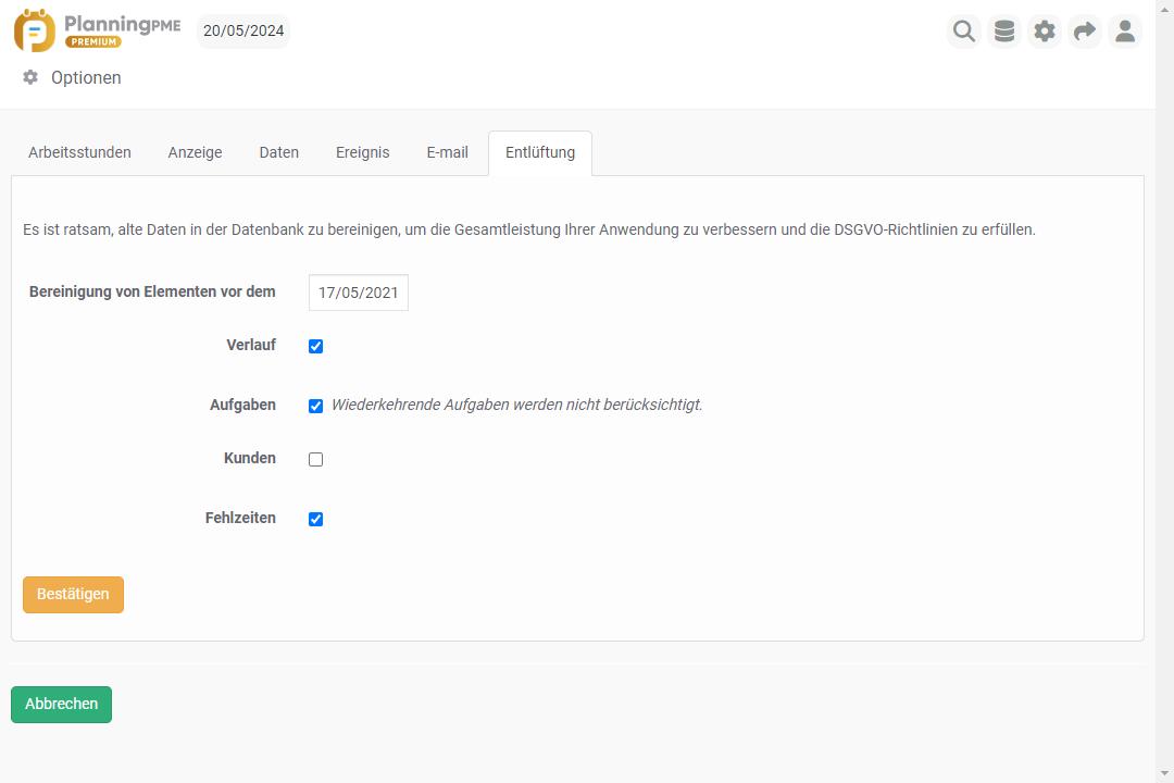 Es ist ratsam, zu alte Daten in der Datenbank zu löschen, um die Gesamtleistung Ihrer Anwendung zu verbessern und die DSGVO-Standards einzuhalten.
