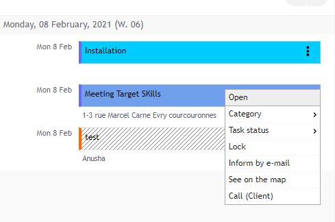 ein Symbol wird durch 3 vertikale Punkte dargestellt, erleichtert die Verwendung von Ereignisaktionen in der Indexansicht, der Ansicht auf mobilen Geräten (Smartphone und Tablets). Es ist jetzt einfacher, z. B. einen Kunden anzurufen, eine E-Mail zu senden oder einen Ereignisstatus zu ändern.