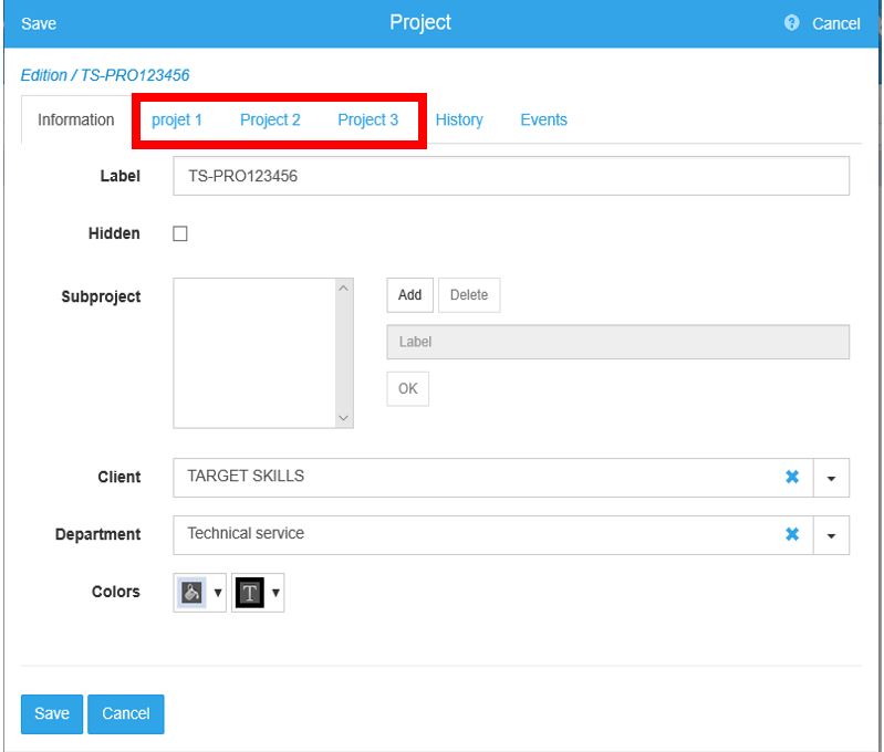 - Hinzufügen der Spalte "Ressource" in der Liste der Projektereignisse : Ressourcennamen sind jetzt im Tab "Ereignisse" eines Projekts zugänglich.