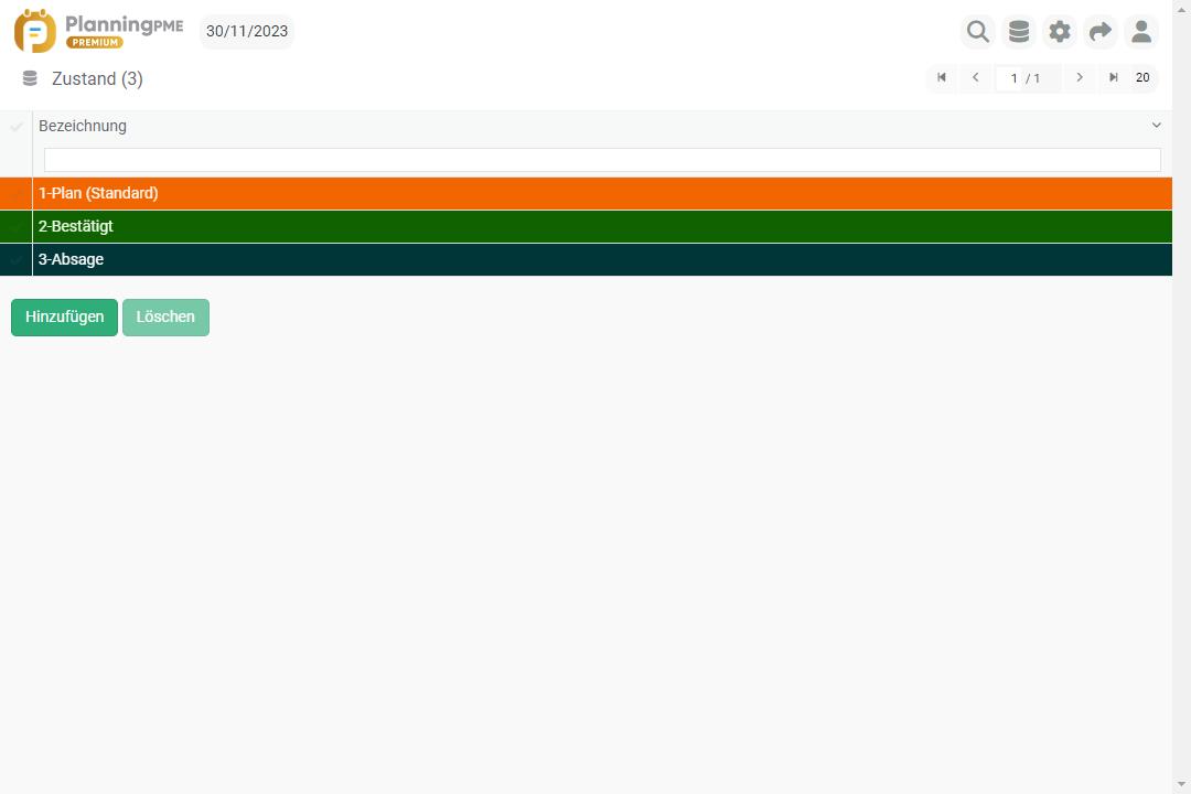 Sie können den Standardzustand eines Ereignisses festlegen. Beim Erstellen eines Ereignisses wird dann dieser Standardzustand ausgewählt.