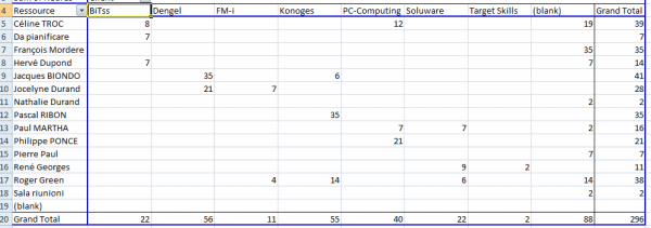 Sie können aller Art Berichte über alle Daten enthalten in Ihrem Plantafel dank der Excel Pivot Tabelllen erstellen.. In der Tat, können Sie Daten über Ressourcen, Kunden, Projekte und Aufgaben in Excel extrahieren , um Statistiken und regelmäßige Berichte zu machen.