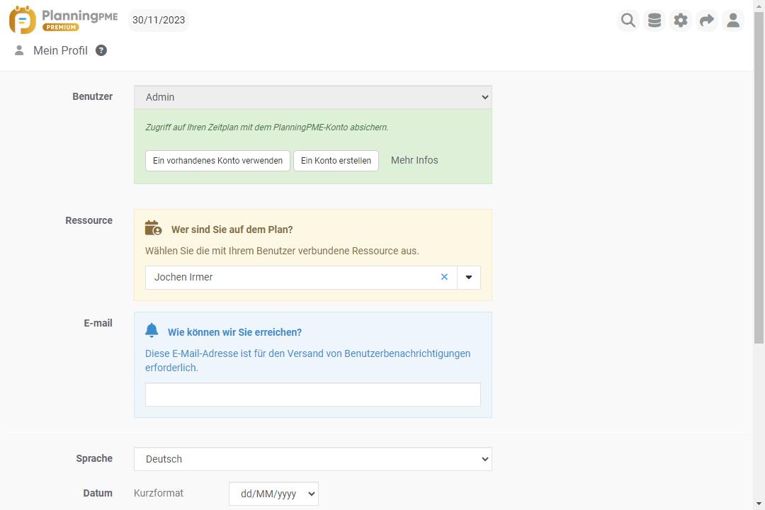 Im Menü "Mein Profil" können Sie auch Datums- und Zeitformate auswählen.