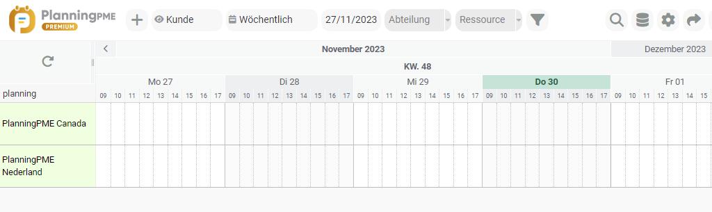 Wenn Sie die Planung nach einem Kunden filtern, werden nur die zugehörigen Projekte angezeigt.