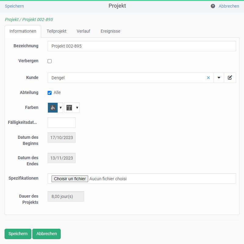 Das Hinzufügen eines Unterprojekts ist direkt vom Projektblatt aus möglich. Geben Sie Ihr Unterprojekt ein und klicken Sie auf "Speichern".